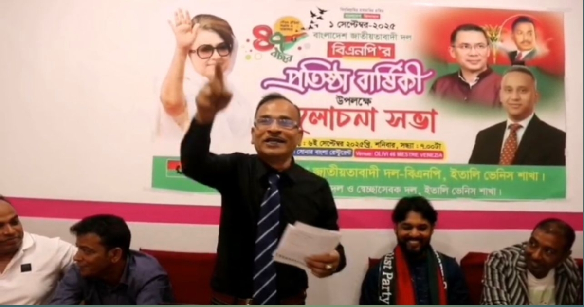 ইতালির ভেনিসে বাংলাদেশ জাতীয়তাবাদী দল বিএনপির ৪৭ তম প্রতিষ্ঠা বার্ষিকী উপলক্ষে আলোচনা সভা অনুষ্ঠিত হয়েছে।