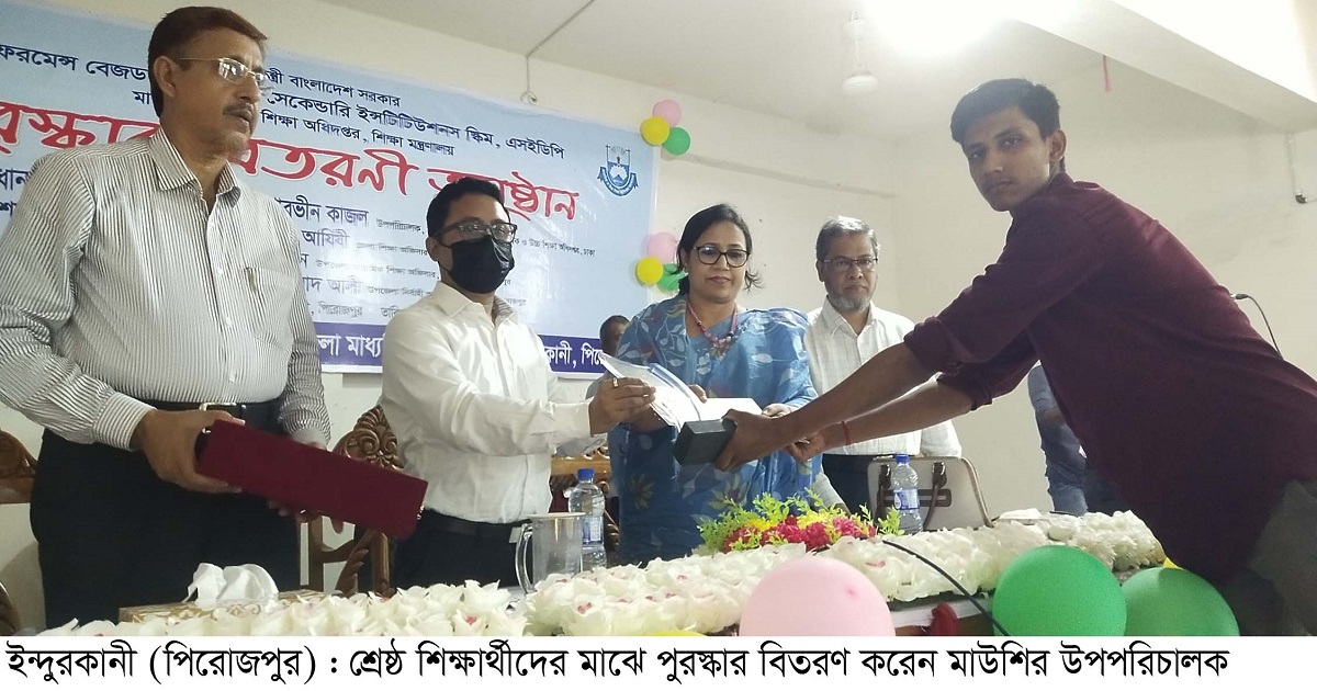 শিক্ষা মন্ত্রনালয়ের মাধ্যমিক ও উচ্চ শিক্ষা অধিদপ্তরের “পারফরমেন্স বেজডগ্রান্টস ফর সেকেন্ডারি ইনষ্টিটিউশন্স” (পিবিজিএসআই) স্কিমের আওতায় পিরোজপুরের ইন্দুরকানীতে ২০২২ ও ২০২৩ সালে এসএসসি ও এইচএসসি সমমান পরীক্ষায় শ্রেষ্ঠ শিক্ষার্থীদের মাঝে পুরস্কার বিতরণ করা হয়েছে। বৃহস্পতিবার দুপুরে উপজেলা পরিষদের অডিটরিয়ামে নির্বাহী কর্মকর্তা হাসান বিন মুহাম্মাদ আলীর সভাপতিত্বে পুরস্কার বিতরণ অনুষ্ঠানে প্রধান অতিথির বক্তব্য রাখেন মাউশি’র পিবিজি এসআই স্কীমের উপপরিচালক প্রফেসর শাহানাজ পারভীন কাজল। বক্তব্য রাখেন প্রকল্পের সহকারী পরিচালক আবু জাফর মোহাম্মদ সেলিম, পিরোজপুর জেলা শিক্ষা অফিসার মো: ইদ্রিস আলীআযিযী, উপজেলা মাধ্যমিক শিক্ষা কর্মকর্তা মো: আব্দুল হান্নান, উপজেলা বিএনপির সভাপতি ফরিদ আহম্মেদ, প্রেসক্লাবের সভাপতি খান মো: নাসির উদ্দিন, দক্ষিণ ইন্দুরকানী বালিকা মাধ্যমিক বিদ্যালয়ের এডহক কমিটির সভাপতি শাহিদুল ইসলাম, কলারণ ইসলামিয়া দাখিল মাদ্রাসার সুপার মাওলানা সরোয়ার হোসাইনপ্রমুখ।