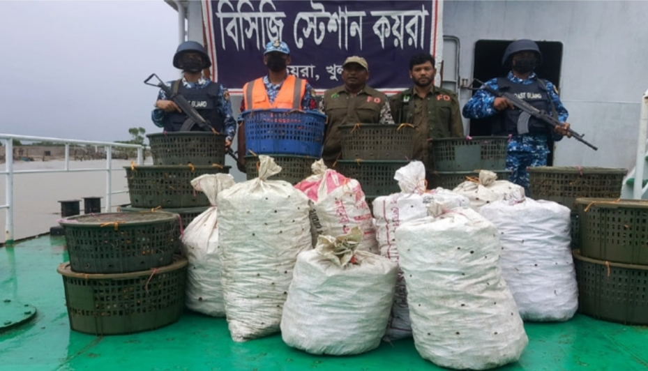 কয়রায় বন বিভাগ ও কোস্টগার্ডের যৌথ অভিযানে ৭০০ কেজি কাঁকড়া সহ ট্রলার জব্দ