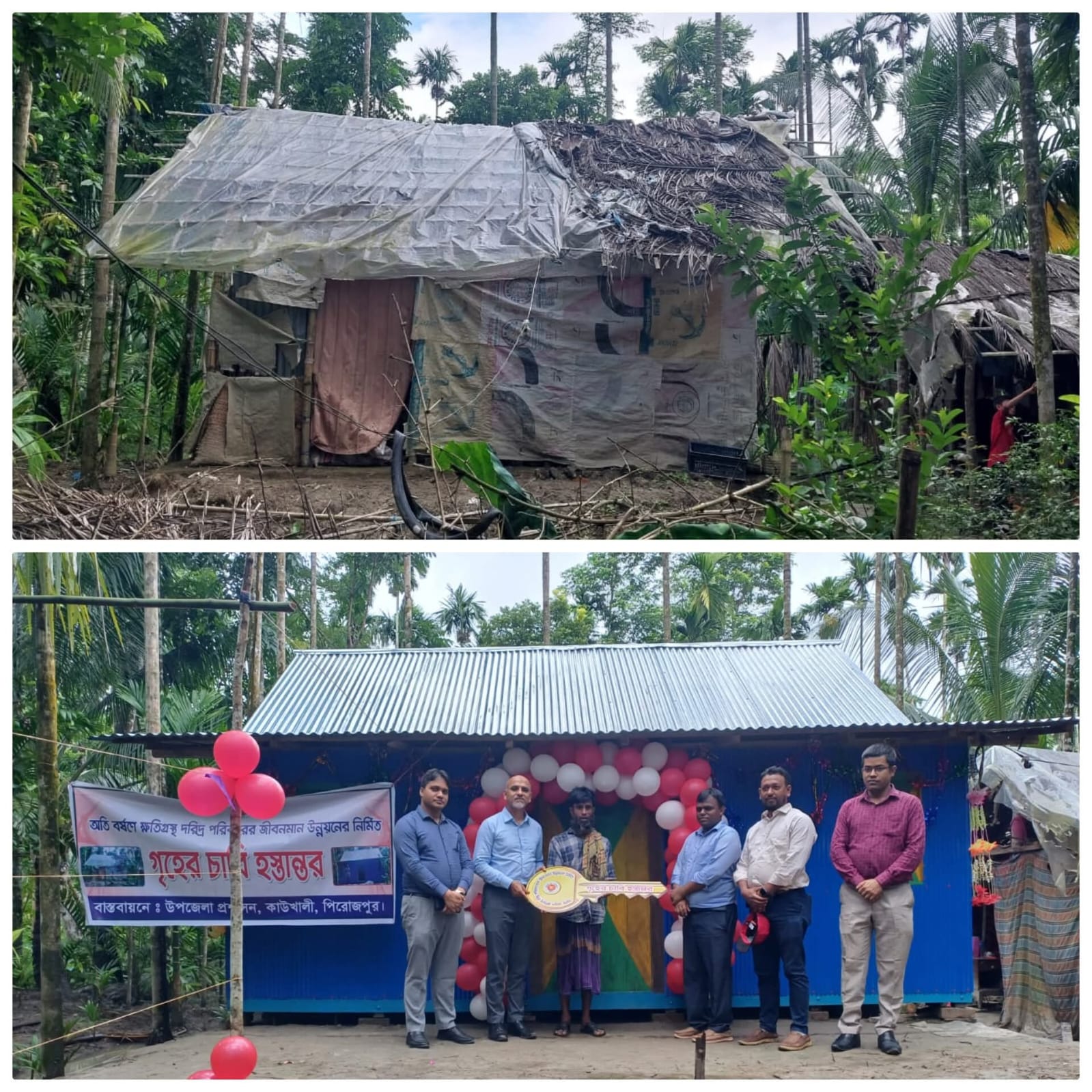 বৃহস্পতিবার (২১ আগস্ট) বিকেলে অতি বর্ষণে ক্ষতিগ্রস্ত দরিদ্র ওমর ফারুকের পরিবারের জীবনমান উন্নয়নে নির্মিত নতুন ঘরের চাবি হস্তান্তর অনুষ্ঠানে প্রধান অতিথি হিসেবে উপস্থিত থেকে চাবি হাতে তুলে দেন পিরোজপুর জেলা প্রশাসক মোঃ আশরাফুল আলম খান। কাউখালী উপজেলা নির্বাহী কর্মকর্তা সজল মোল্লার সভাপতিত্বে বিতরণ অনুষ্ঠানে বিশেষ অতিথি হিসেবে উপস্থিত ছিলেন, অতিরিক্ত জেলা প্রশাসক আলাউদ্দিন ভূঁইয়া। এসময় উপস্থিত ছিলেন, কাউখালী উপজেলার সহকারী কমিশনার (ভূমি) সুদীপ্ত দেবনাথ, উপজেলা প্রকল্প বাস্তবায়ন কর্মকর্তা মোঃ মফিজুর রহমান, কাউখালী সদর ইউনিয়ন পরিষদের চেয়ারম্যান মোস্তাফিজুর রহমান। উল্লেখ্য দিনমজুর ওমর ফারুকের বসত ঘরটি বসবাসের অযোগ্য হয়ে পড়ায় পলিথিন দিয়ে কোন মতে বসবাস করত। নতুন ঘর তোলার সামর্থ্য এই দিনমজুরের ছিল না। কাউখালী উপজেলা নির্বাহী কর্মকর্তা সজল মোল্লা বিভিন্ন মাধ্যমে হতভাগ্য ওমর ফারুকের ঘরের সংবাদ পেয়ে ঘটনাস্থলে গিয়ে সরকারের পক্ষ থেকে নতুন ঘর তুলে দেওয়ার আশ্বাস দেন।এ সময় জেলা প্রশাসক মোঃ আশরাফুল আলম খান বলেন, অসহায় হত দরিদ্র পরিবারের পাশে সরকার সবসময় আছে। সরকারের পক্ষ থেকে আমরা চেষ্টা করছি অসহায় ও হত দরিদ্র পরিবারদের যাচাই বাছাই করে বিভিন্ন প্রকার সরকারি সাহায্য ও সহযোগিতা করা।