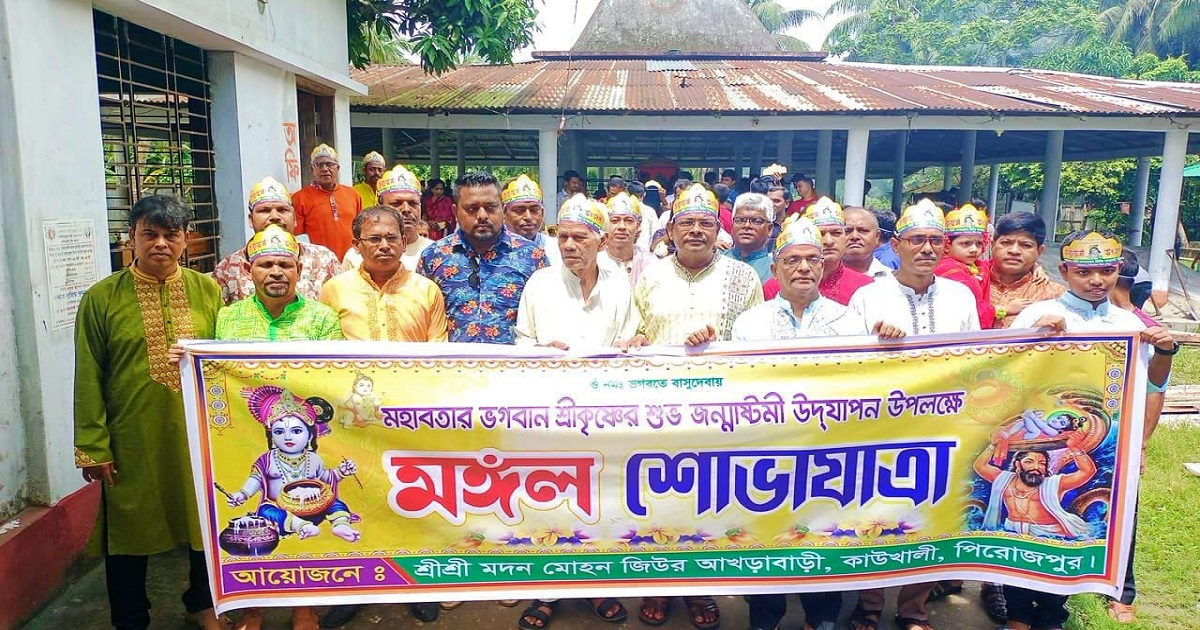 পিরোজপুরের কাউখালী উপজেলা শ্রীশ্রী মদনমোহন জিউর আখরাবাড়ী এর আয়োজনে শনিবার (১৬আগষ্ট) বেলা এগারোটায় ভক্তবৃন্দের উপস্থিতিতে একটি মঙ্গল শোভাযাত্রা আখড়াবাড়ি থেকে শুরু করে প্রধান সড়ক প্রদক্ষিণ শেষে শোভাযাত্রা আখড়া বাড়িতে শেষ করা হয়। মঙ্গল শোভাযাত্রায় অংশগ্রহণ করেন, উপজেলা বিএনপি'র যুগ্ম সাধারণ সম্পাদক জিয়াউল হাসান লিকসন, উপজেলা বিএনপি'র সাবেক যুগ্ন আহবায়ক গিয়াস উদ্দিন অলি, স্বেচ্ছাসেবক দলের সদস্য সচিব রাকিব তালুকদার, অ্যাডভোকেট পরিতোষ সমাদ্দার, অ্যাডভোকেট হীরালকুণ্ড, মদনমোহন আখরাবাড়ী কমিটির সভাপতি শংকর বসু,সাধারণ সম্পাদক অধ্যক্ষ অলক কর্মকার, সহ সাধারণ সম্পাদক পলাশ কর্মকার, সাংগঠনিক সম্পাদক লিটন কৃষ্ণ কর, উদযাপন কমিটির আহবায়ক সজল কর্মকার, সদস্য সচিব মনটা পাল সহ নারী- পুরুষ ভক্তবৃন্দ উপস্থিত ছিলেন।