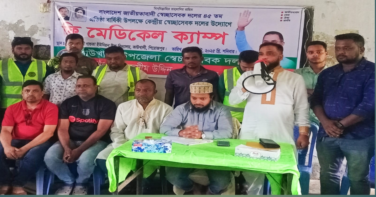 বাংলাদেশ জাতীয়তাবাদী স্বেচ্ছাসেবক দলের ৪৫ তম প্রতিষ্ঠা বার্ষিকী উপলক্ষে পিরোজপুরের কাউখালীতে সর্বস্তরের মানুষের জন্য একটি ফ্রি মেডিকেল ক্যাম্পের আয়োজন করেন, কাউখালীর কৃতি সন্তান স্বেচ্ছাসেবক দলের কেন্দ্রীয় যুগ্ম সাধারণ সম্পাদক মোঃ জসিম উদ্দিন।