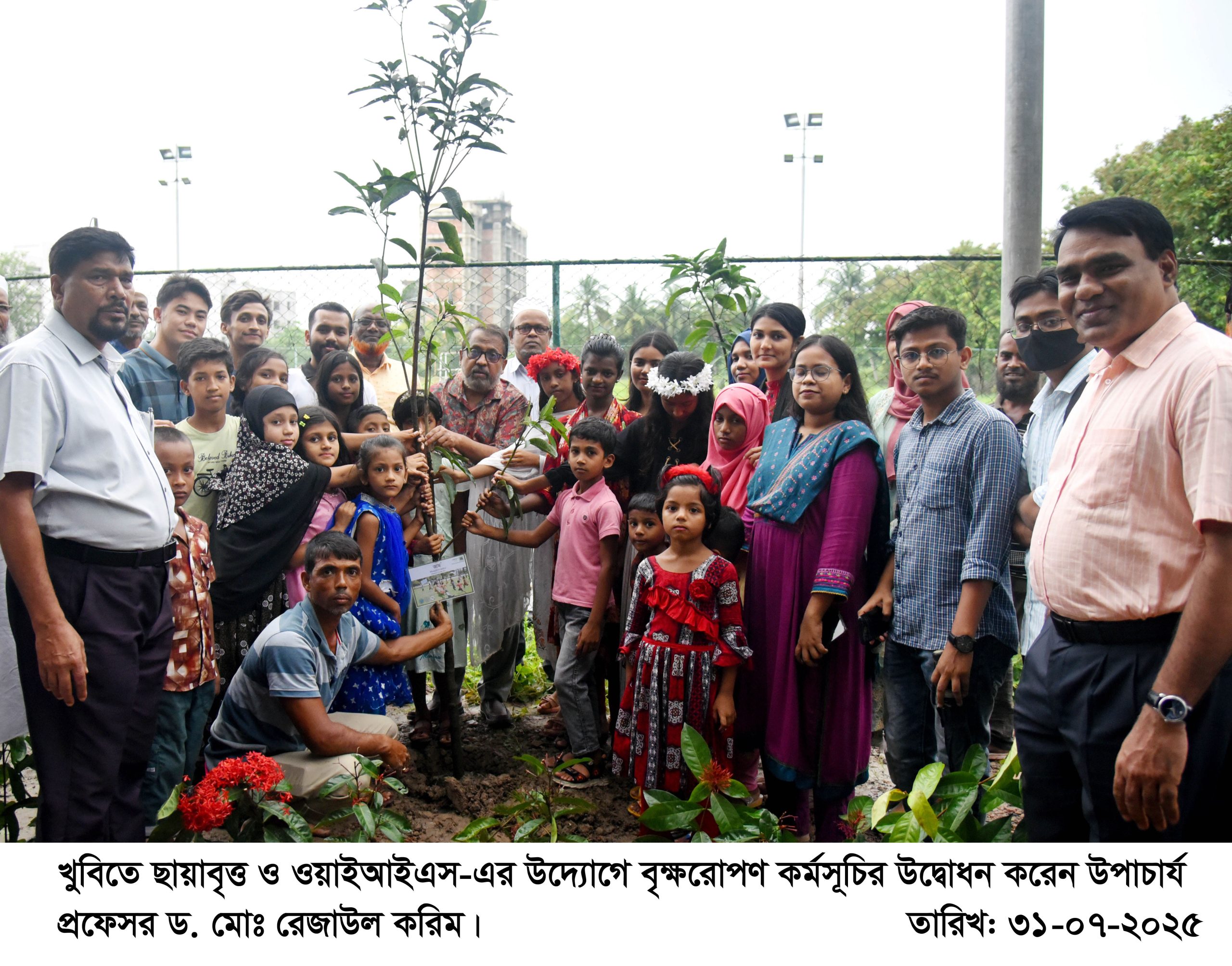 খুলনা বিশ্ববিদ্যালয়ের সাহিত্য বিষয়ক সংগঠন ‘ছায়াবৃত্ত পাঠক ফোরাম’ এবং তরুণ নেতৃত্ব নির্ভর সংগঠন ইয়ুথ ফর ইনক্লুশন এন্ড সাসট্যানেবিলিটি (ওয়াইআইএস) এর যৌথ উদ্যোগে বৃক্ষরোপণ কর্মসূচি অনুষ্ঠিত হয়েছে। আজ ৩০ জুলাই (বৃহস্পতিবার) বিকেল ৫টায় বিশ্ববিদ্যালয় প্রশাসনিক ভবনের পশ্চিম পাশে টেনিস কোর্ট সংলগ্ন খালি জায়গায় বিভিন্ন জাতের ফলজ গাছের চারা রোপণ করা হয়। বৃক্ষরোপণ কর্মসূচির উদ্বোধন করেন বিশ্ববিদ্যালয়ের উপাচার্য প্রফেসর ড. মোঃ রেজাউল করিম। তিনি বলেন, গাছ আমাদের সবচেয়ে উপকারী বন্ধু। আমাদের জীবনে গাছের উপকারিতার কথা বলে শেষ করা যাবে না। শুধু প্রকৃতির শোভা বর্ধনই না, গাছ আমাদের পরিবেশ, জীববৈচিত্র্য এবং জীবন বাঁচাতে সহায়তা করে। তিনি, উপস্থিত কোমোলমতি শিশুদের আরও বেশি গাছ লাগানোর জন্য উৎসাহ প্রদান করেন এবং ছায়াবৃত্ত ও ওয়াইআইএসকে এই উদ্যোগের জন্য ধন্যবাদ জানান।