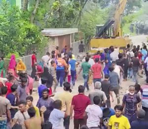 এ সময় স্থানীয়রা ইটপাটকেল নিক্ষেপ করলে পুলিশ পিছু হটতে বাধ্য হয়। পরে পুলিশ টিয়ার সেল নিক্ষেপ করে। এ সময় উচ্ছেদ অভিযানে যাওয়া বুলডেজার গাড়িতে ভাঙচুর  করা হয়।