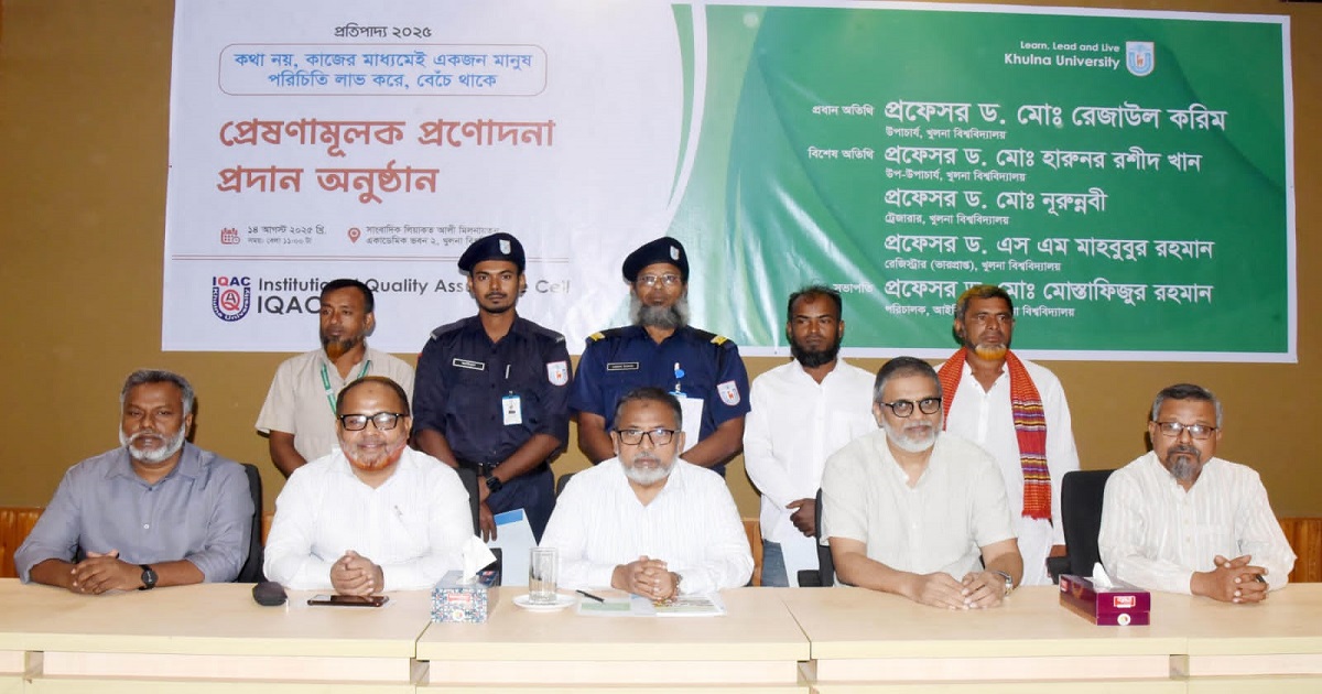 খুলনা বিশ্ববিদ্যালয়ের কর্মকর্তা-কর্মচারীদের কর্মদক্ষতা ও কাজের মান মূল্যায়নের ভিত্তিতে ৫ জনকে প্রেষণামূলক প্রণোদনা প্রদান করা হয়েছে। আজ ১৪ আগস্ট (বুধবার) বেলা ১১টায় বিশ্ববিদ্যালয়ের সাংবাদিক লিয়াকত আলী মিলনায়তনে আয়োজিত অনুষ্ঠানে প্রধান অতিথি হিসেবে প্রণোদনার অর্থ ও সনদপত্র তুলে দেন উপাচার্য প্রফেসর ড. মোঃ রেজাউল করিম।