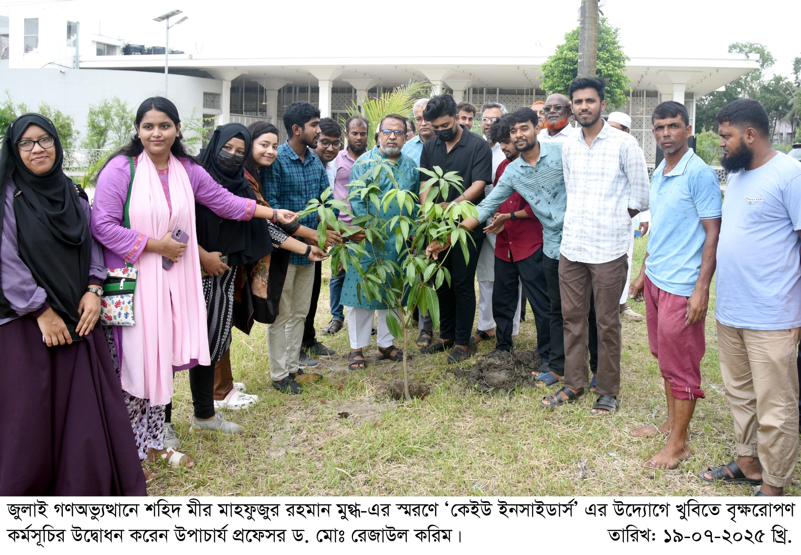 খুলনা বিশ্ববিদ্যালয়ে শহিদ মীর মুগ্ধ’র স্মরণে কেইউ ইনসাইডার্স এর উদ্যোগে বৃক্ষরোপণ