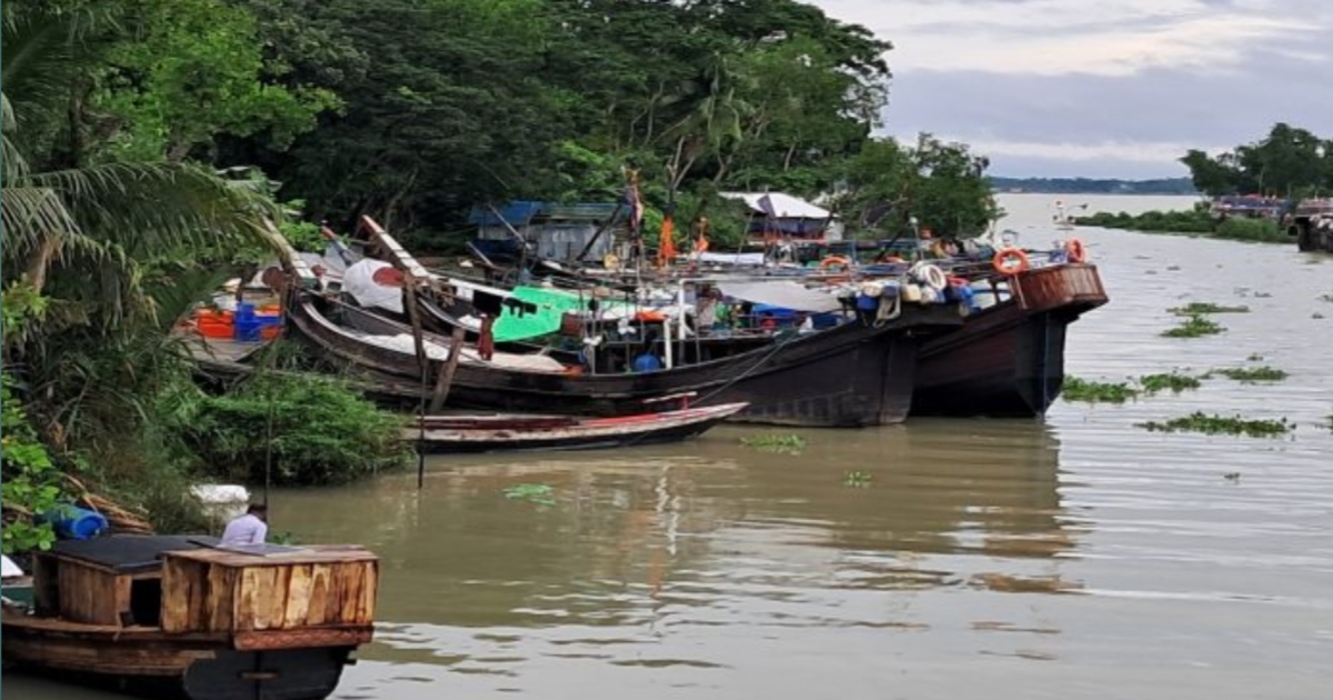 লঘুচাপের প্রভাবে বঙ্গোপসাগরে টিকতে না পেরে ফিশিংবোটবহর ফিরে এসেছে। শরণখোলা রাজৈর মৎস্যঘাটে নোঙ্গর করে আছে বোটের বহর। বুধবার দুপুরে তোলা ছবি।