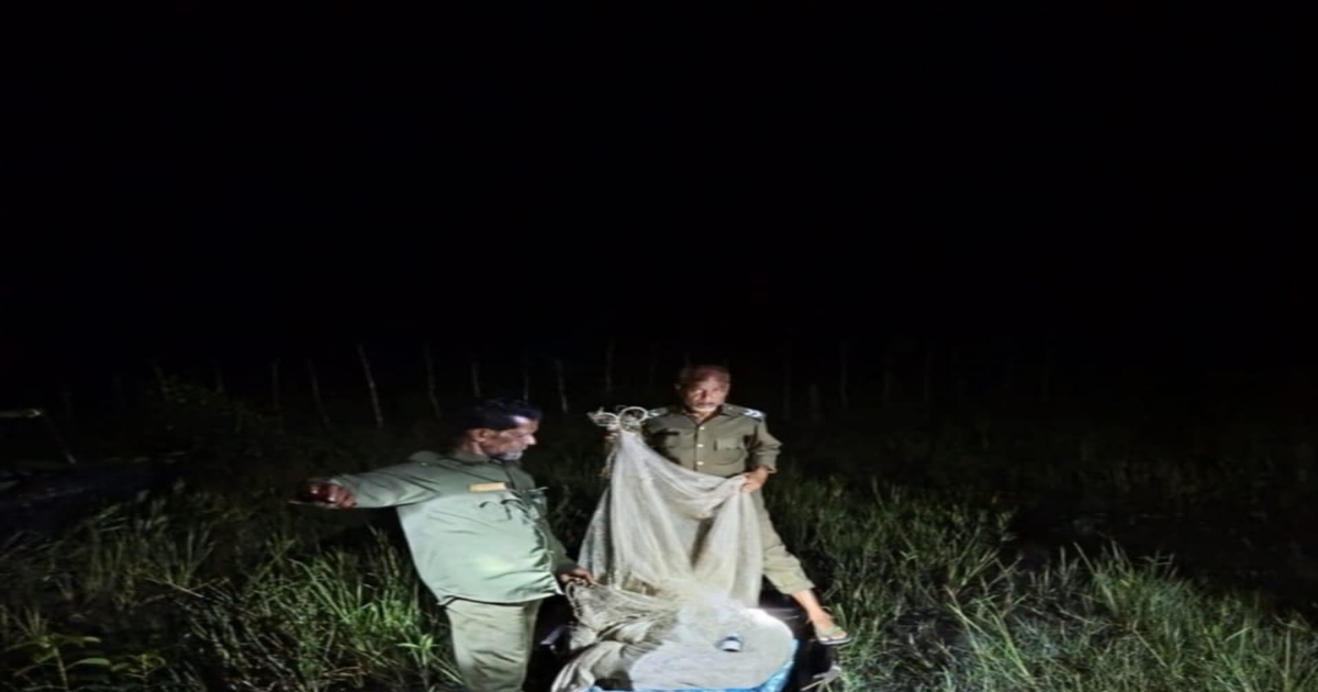 পশ্চিম সুন্দরবনের নলবুনিয়ায় ১ টি নৌকা, বিষের বোতল, ভেষালী জাল জব্দ করেছে বনরক্ষীরা