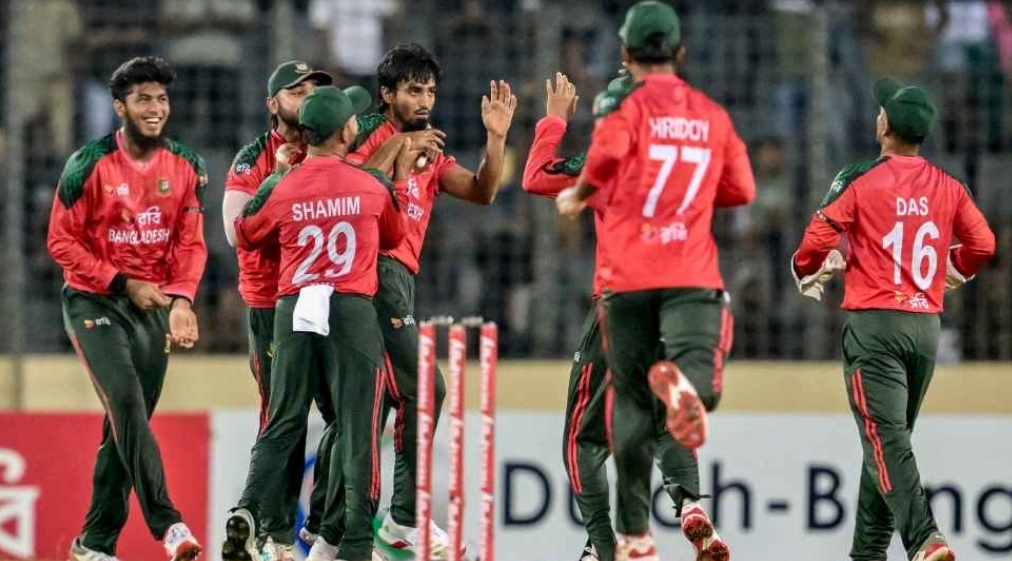 বাংলাদেশের হয়ে শরিফুল ইসলাম ৩টি উইকেট শিকার করেন। শেখ মাহেদী ও তানজিম সাকিব নেন ২টি করে উইকেট, আর একটি করে উইকেট নেন রিশাদ ও মোস্তাফিজ।
