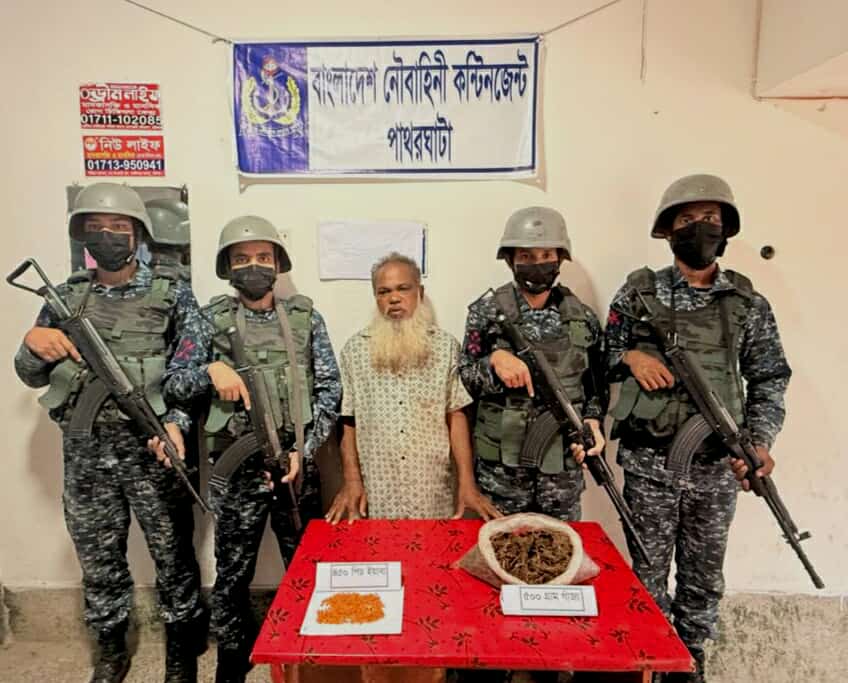 টহল চলাকালে সন্দেহজনকভাবে ঘোরাফেরা করা অবস্থায় মোঃ শুক্কুর হোসেন (৬০) নামে এক ব্যক্তিকে আটক করা হয়। পরে তার দেহ এবং সঙ্গে থাকা ব্যাগ তল্লাশি করে ৪৫০ পিস ইয়াবা ও আনুমানিক ৫০০ গ্রাম গাঁজা উদ্ধার করা হয়।
