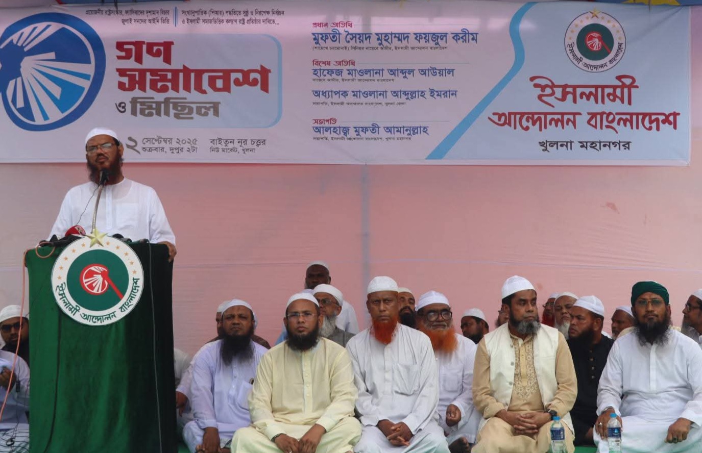 পিআর পদ্ধতিতে জাতীয় নির্বাচন, প্রয়োজনীয় রাষ্ট্রসংস্কার, জুলাই সনদের আইনী ভিত্তি প্রদান, অপরাধী, খুনি ও স্বৈরাচারের দৃশ্যমান বিচার এবং ইনসাফভিত্তিক কল্যাণ রাষ্ট্র প্রতিষ্ঠার দাবিতে ইসলামী আন্দোলন বাংলাদেশ খুলনা মহানগর এর উদ্যোগে বিক্ষোভ মিছিল পূর্বক গণসমাবেশে প্রধান অতিথির বক্তব্যে তিনি একথা বলেন।