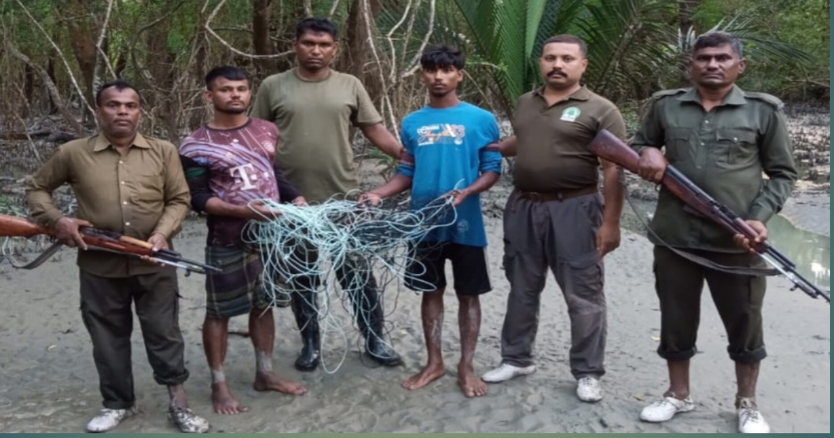 পূর্ব সুন্দরবনের কচিখালি ডিমেরচরে দুই হরিণ শিকারি আটক : হরিণ ধরা ফাঁদ উদ্ধার