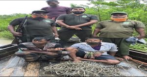 শরণখোলাঃ পূর্ব সুন্দরবনের কচিখালী অভয়ারণ্যে মঙ্গলবার হরিণ শিকারের সময় আটক দুই শিকারী।