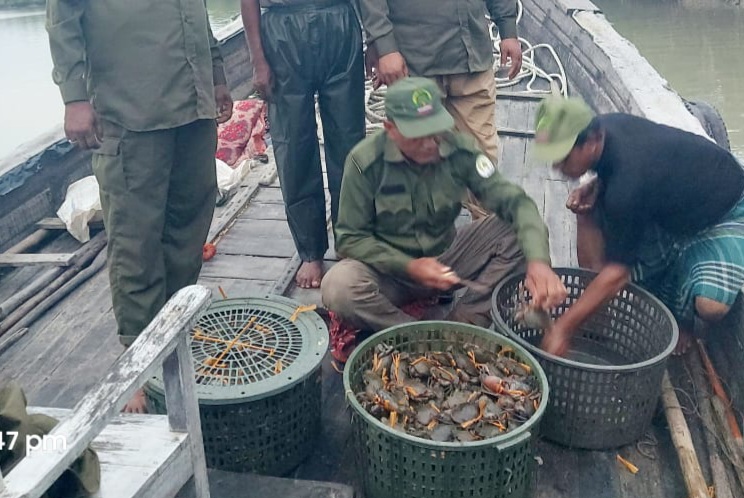 বন বিভাগ সূত্রে জানা যায়, বৃহস্পতিবার (১৭ জুলাই) বিকেলে জেলেপল্লী টহল ফাঁড়ি,দুবলার ভারপ্রাপ্ত কর্মকর্তা সুব্রত কুমার দাসের নেতৃত্বে দুবলা ও কোকিলমনি টহল ফাঁড়ির বনরক্ষীরা যৌথভাবে টহল কালে কোকিলমনির কবরখালী সংলগ্ন বনাঞ্চলের খালে একটি জেলে নৌকা দেখে এগিয়ে যায়। এ সময় বনরক্ষীদের দেখে নৌকায় থাকা জেলেরা লাফিয়ে পড়ে সুন্দরবনের মধ্যে পালিয়ে যায়। পরে বনরক্ষীরা নৌকাটি আটক করে এবং নৌকায় তল্লাশী করে দুই ঝুড়ি জীবিত কাকড়া জব্দ করেন। সুন্দরবনে এখন প্রবেশ ও মাছ ধরায় তিন মাসের নিষেধাজ্ঞা জারী রয়েছে। নিষেধাজ্ঞা অমান্য করে অজ্ঞাত পরিচয়ের জেলেরা অবৈধভাবে সুন্দরবনে গিয়ে কাকড়া ধরে।