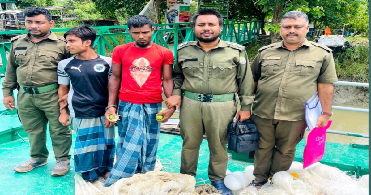 বনবিভাগ সূত্রে জানা যায়, পূর্ব সুন্দরবনের শরণখোলা ফরেস্ট স্টেশন কর্মকর্তা ফরেষ্টার তানভির হাসান ইমরানের নেতৃত্বে বনরক্ষীরা নিয়মিত টহলকালে সোমবার (৪ আগষ্ট) ভোরে শরণখোলা রেঞ্জের ধাবরী খাল এলাকা থেকে একটি ডিঙি নৌকাসহ দুই জেলেকে আটক করেছে।আটক জেলেরা হচ্ছে, মাসুম হাওলাদার(২৯) জান্নাতুল আকন(১৯) এদের বাড়ী শরণখোলা গ্রামে। এসময় জব্দ করা হয়েছে দুই কেজি চিংড়ি ও একটি বেড় জাল। আটক এই জেলেরা অবৈধভাবে সুন্দরবনে গিয়ে মাছ ধরছিলো। বর্তমানে সুন্দরবনে প্রবেশ ও মাছ ধরায় তিন মাসের নিষেধাজ্ঞা জারী রয়েছে। আগামী ৩১ আগষ্ট এই নিষেধাজ্ঞা উঠে যাবে বলে বনবিভাগ সূত্রে জানা গেছে।