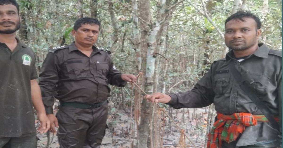 বন বিভাগ সূত্রে জানা যায়, পূর্ব সুন্দরবনের শরণখোলা রেঞ্জের স্মার্ট টীম-২ এর টীম লিডার ফরেস্টার দিলীপ মজুমদারের নেতৃত্বে বনরক্ষীরা বৃহস্পতিবার (২৮ আগস্ট) সকালে সুন্দরবনের চাঁদপাই রেঞ্জের মরাপশুর ফরেস্ট টহল ফাঁড়ির তালতলা খালের পার্শ্ববর্তী বনাঞ্চলে হেটে টহলের সময় বনের মধ্যে শিকারিদের পেতে রাখা ৭শ ফুট নাইলনের তৈরি মালা ফাঁদ উদ্ধার করেন।