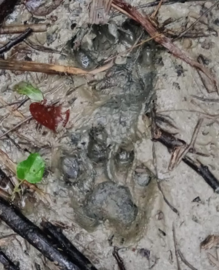 শরণখোলাঃ পূর্ব সুন্দরবন বন বিভাগের শরণখোলা রেঞ্জ অফিসের কাছে আসা বাঘের পায়ের ছবি