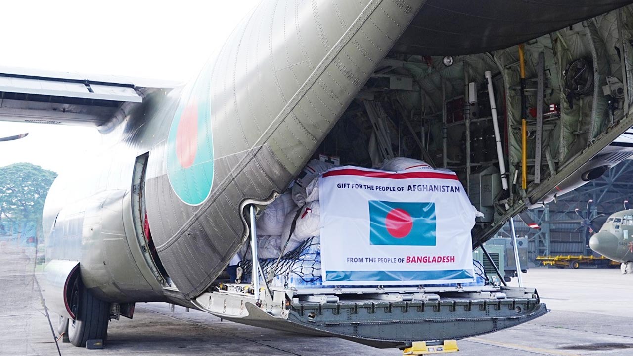 আফগানিস্তানে ভয়াবহ ভূমিকম্পে হাজারো মানুষের মৃত্যু ও ব্যাপক ধ্বংসযজ্ঞের পর ক্ষতিগ্রস্তদের জন্য জরুরি ত্রাণসামগ্রী পাঠিয়েছে বাংলাদেশ ।শুক্রবার (৫ সেপ্টেম্বর) সকাল ৮টার দিকে এ কে খন্দকার ঘাঁটি থেকে বাংলাদেশ বিমানবাহিনীর সি-১৩০ জে পরিবহন বিমানে ত্রাণসামগ্রী পাঠানো হয়।