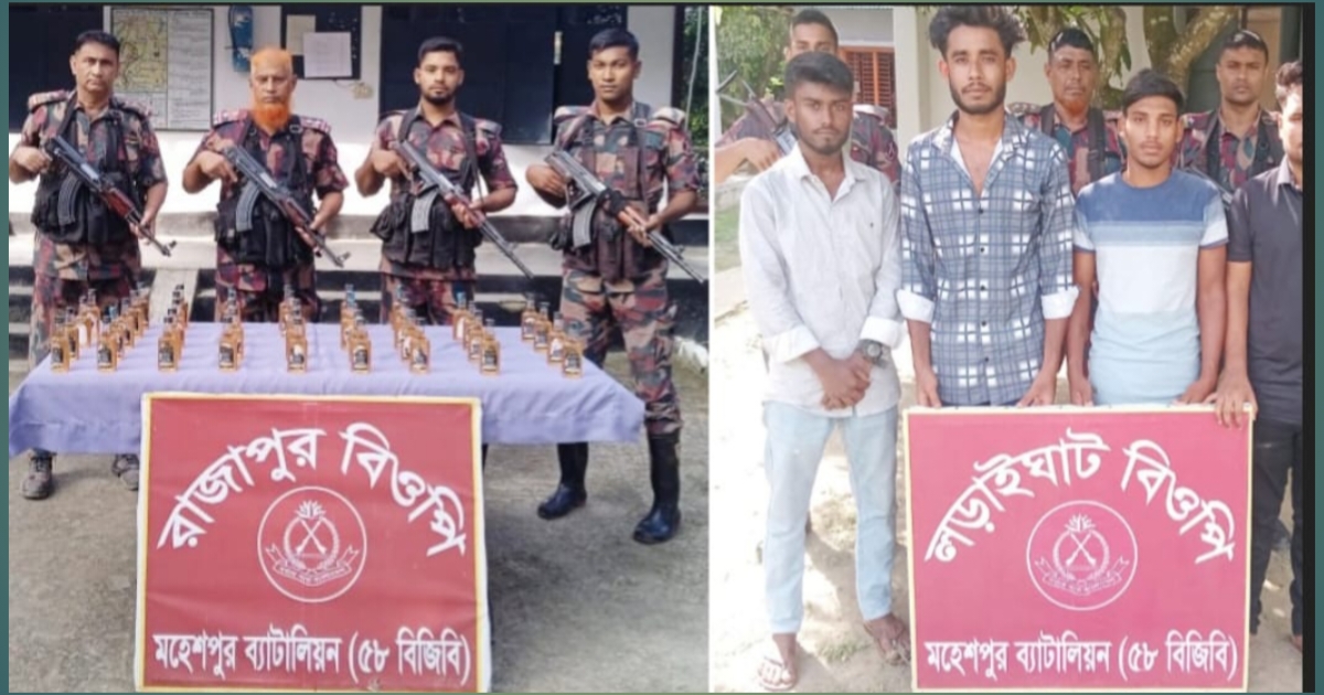 বিজিবির এক প্রেসবিজ্ঞপ্তিতে জানিয়েছে গত ২৩ সেপ্টেম্বর ২০২৫ তারিখে ৩-৩০ ঘটিকায় মহেশপুর ব্যাটালিয়ন (৫৮ বিজিবি) এর অধীনস্থ রাজাপুর বিওপি'র দায়িত্বপূর্ণ এলাকার সীমান্ত পিলার ৭১/৯-এস হতে ২০০ গজ বাংলাদেশের অভ্যন্তরে রাজাপুর গ্রামের মোঃ মইনুদ্দিনের পান বাগানের মধ্যে হতে নায়েব সুবেদার মোঃ ভূঁইয়া ইকবাল হোসেন এর নেতৃত্বে মাদক বিরোধী অভিযান পরিচালনা করে আসামীবিহীন ৪২ বোতল ভারতীয় মদ উদ্ধার করা হয় এবং ৬ টা ৪০ ঘটিকায় বাঘাডাংগা বিওপি'র দায়িত্বপূর্ণ এলাকার সীমান্ত পিলার ৬০/৩৭-আর হতে ২০ গজ বাংলাদেশের অভ্যন্তরে বাঘাডাংগা গ্রামের মোঃ শাহিন আলমের জমির উপর হতে হাবিলদার মোঃ ফেরদৌস আলী এর নেতৃত্বে নিয়মিত টহল পরিচালনা করে অবৈধভাবে বাংলাদেশ হতে ভারতে গমনকালে ০৬ জন বাংলাদেশী আটক করে। এদের মধ্যে ৪ জন পুরুষ আর ২ নারী রয়েছে এবং ২৪ সেপ্টেম্বর বুধবার সকাল ১০ ঘটিকায় মহেশপুর ৮৫- বিজিবির লড়াইঘাট বিওপি'র সীমান্ত পিলার ৬০/১৩৭-আর হতে ৬০০ গজ বাংলাদেশের অভ্যন্তরে লড়াইঘাট গ্রামের মোঃ অলি হোসেনের আম বাগানের মধ্যে হাবিলদার মোঃ হেমায়েত হোসেন এর নেতৃত্বে নিয়মিত টহল পরিচালনা করে অবৈধভাবে বাংলাদেশ হতে ভারতে গমনকালে ০৪ জন পুরুষ বাংলাদেশী নাগরিক আটক করা হয়। সকল আটককৃতদের বাড়ি মাদারীপুর গোপালগঞ্জ এবং ঝিনাইদহ জেলায়। সকল আটককৃতদের মহেশপুর থানায় হস্তান্তর করা হয়েছে ।