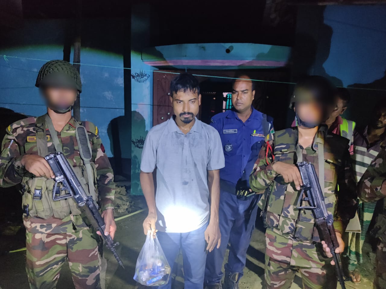 মহেশপুর থানা ও সেনা ক্যাম্প সূত্রে জানা গেছে, মঙ্গলবার রাতে আনুমানিক ১ টার সময় মহেশপুর উপজেলার ভৈরববাজার এলাকায় সুনির্দিষ্ট গোয়েন্দা তথ্যের ভিত্তিতে যৌথ বাহিনীর বিশেষ অভিযান পরিচালনা করে একজন সক্রিয় মাদক ব্যবসায়ীকে আটক করা হয় এবং বিপুল পরিমাণ ইয়াবা, নগদ অর্থ ও মোবাইল ফোন উদ্ধার করা হয়।