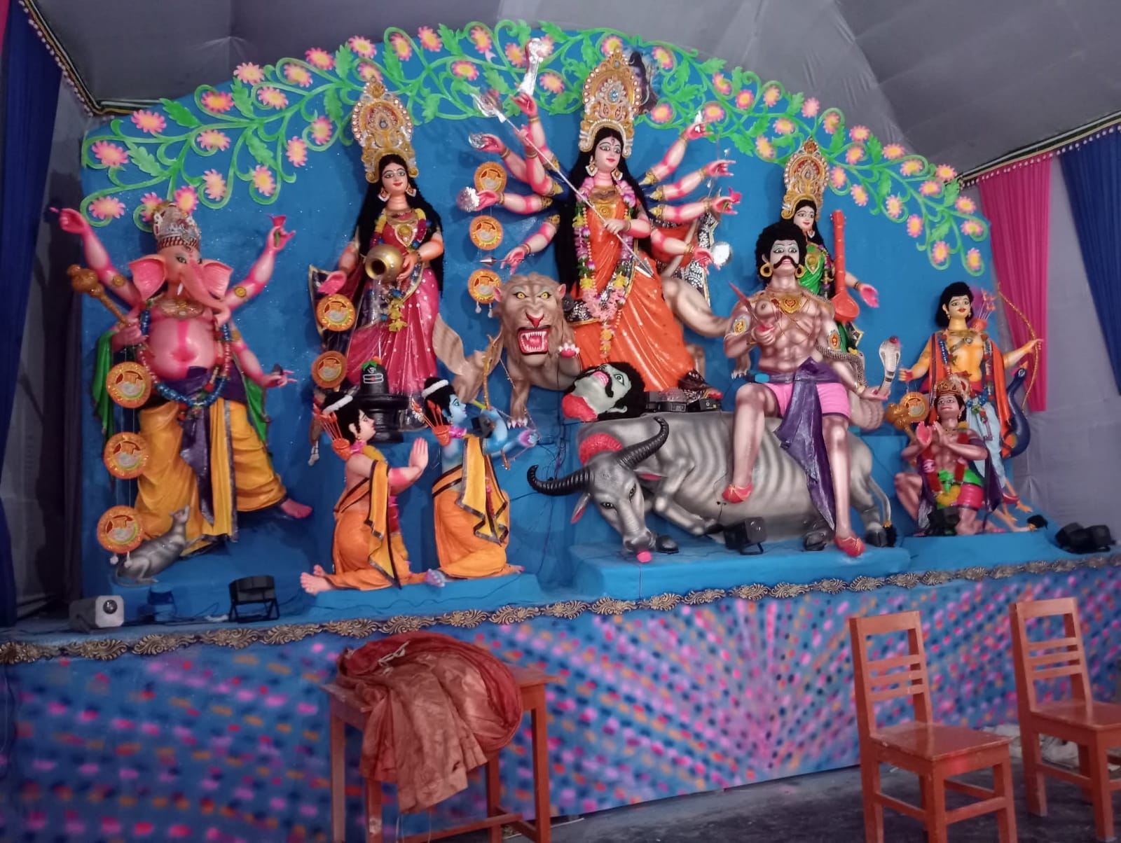 প্রতিবছরের মত হিন্দু সম্প্রদায়ের ধর্মীয় উৎসব পালন করার লক্ষে প্রতিমা তৈরির কাজ ইতোমধ্যে শেষ হয়েছে। মহেশপুর উপজেলায় এ বছর ৪২ টি পূজা মন্ডপে পূজা অনুষ্ঠিত হচ্ছে। উপজেলা পূজা কমিটির সাধারণ সম্পাদক প্রবির কুমার দাস জানিয়েছেন, সরকারের পক্ষ থেকে প্রতিটা পূজা মন্ডপে ৫০০ কেজি করে চাউল বরাদ্দ করা হয়েছে। ইতোমধ্যে মন্ডপে মন্ডপে প্রতিমা তৈরির কাজ শেষ হয়ে গেছে। ২৮ শে সেপ্টেম্বর ষষ্ঠী পূজার মাধ্যমে প্রতি পূজা মন্ডপে জমজমাট করা হয়েছে পূজা মন্ডপের চত্তরে নানা ধরণের পসরা বসেছে। জেলা উপজেলা প্রসাশন বিভিন্ন কমিটির মাধ্যমে পূজা মন্ডপগুলোর তদারকি করছে। এ দিকে প্রসাশনের পক্ষ থেকে সর্বচ্চো সতর্ক অবস্থায় রয়েছে। ৪২ টি পূজা মন্ডপে ২৬৬ জন আনসার ভিডিপি সদস্যরা নিরাপত্তা দিচ্ছে বলে জানিয়েছেন উপজেলা আনসার ভিডিপি কমান্ডার খুশি খাতুন।