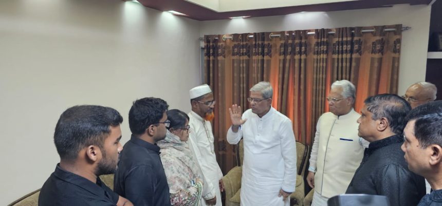 শোকসন্তপ্ত পরিবারের সদস্যদের সঙ্গে সাক্ষাৎকালে মির্জা ফখরুল বিএনপির চেয়ারপারসন খালেদা জিয়া ও ভারপ্রাপ্ত চেয়ারম্যান তারেক রহমানের পক্ষে সহমর্মিতার বার্তা পৌঁছে দেন।