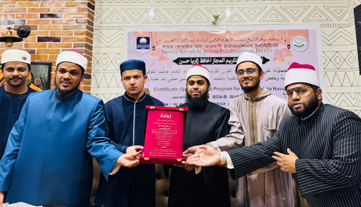 শায়খ শোয়াইব আল আজহারী ফাউন্ডেশন ও ইনস্টিটিউটের উদ্যোগে আয়োজন করা হয় কোরআনিক সনদ প্রদান ও সংবর্ধনা অনুষ্ঠান।"