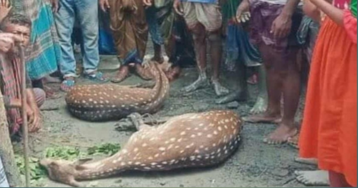 সুন্দরবনে বাঘের তাড়া খেয়ে জীবন বাচাতেঁ নদী সাতরে লোকালয়ে ঢুকে পড়া দুইটি মায়াবী চিত্রল হরিণ উদ্ধার করেছে সুন্দরবন বিভাগ।
