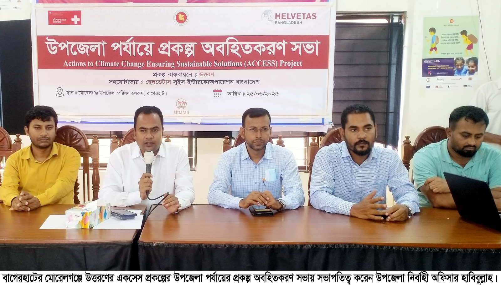 বাগেরহাটের মোরেলগঞ্জে উত্তরণের একসেস প্রকল্পের উপজেলা পর্যায়ের প্রকল্প অবহিতকরণ সভা অনুষ্ঠিত হয়েছে। বুধবার সকাল ১১টায় উপজেলা পরিষদ হলরুমে হেলভেটাস সুইস ইন্টারকোঅপারেশন বাংলাদেশ এর সহযোগিতায় উত্তরণ সংস্থার বাস্তবায়নে একসেস্ প্রকল্পের আওতায় প্রকল্প অবহিতকরণ সভায় সভাপতিত্ব করেন উপজেলা নির্বাহী অফিসার হাবিবুল্লাহ।