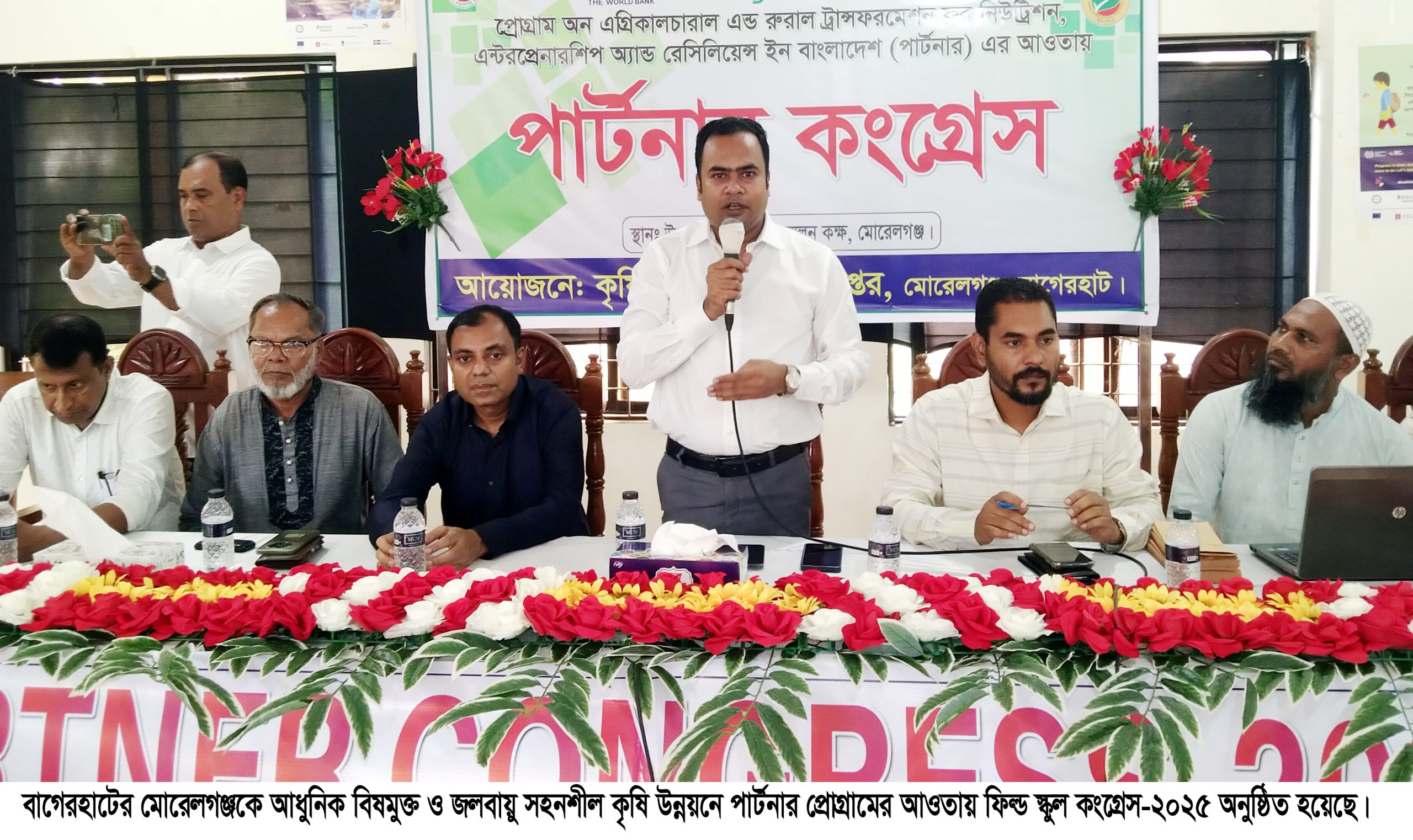 মোরেলগঞ্জকে আধুনিক বিষমুক্ত ও জলবায়ু সহনশীল কৃষি উন্নয়নে পার্টনার প্রোগ্রামের আওতায় ফিল্ড স্কুল কংগ্রেস-২০২৫ অনুষ্ঠিত হয়েছে।