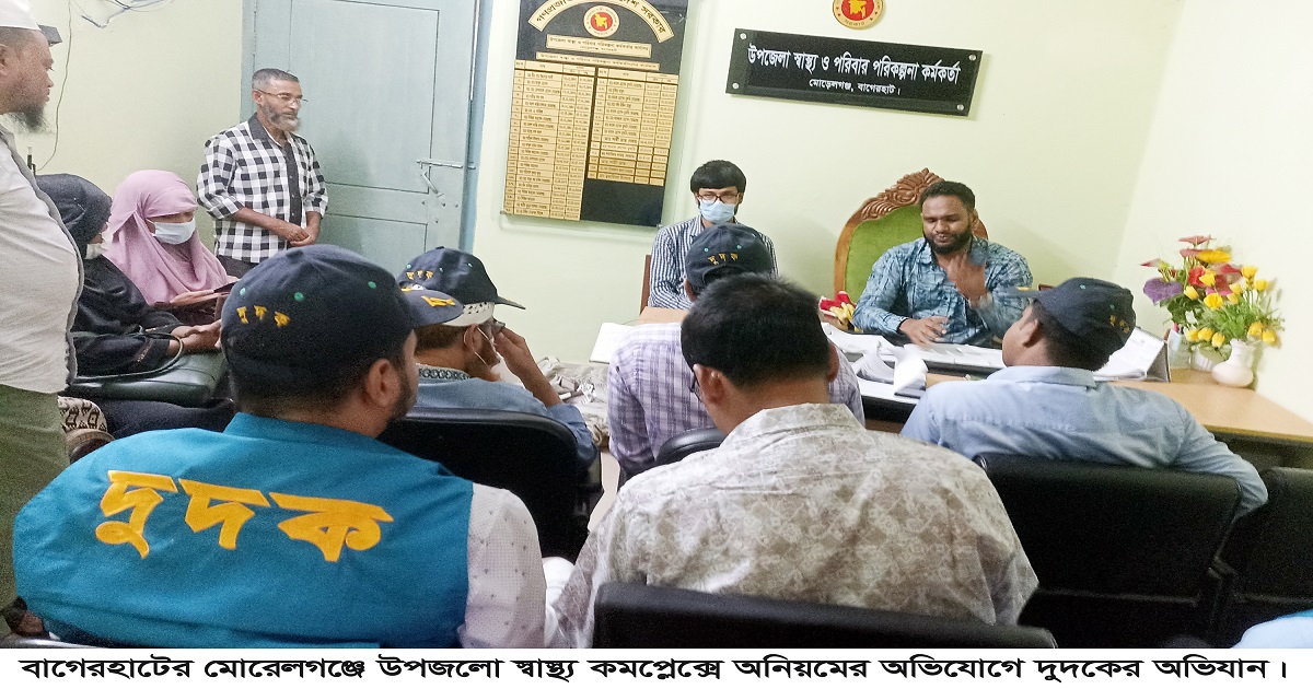 বাগেরহাটের মোরেলগঞ্জ উপজেলা স্বাস্থ্য কমপ্লেক্সের নানাবিধ অনিয়ম, ওষুধ সংকট, বভির্ বিভাগে সাধারণ রোগীদের টিকিট গ্রহনে ৩ টাকার পরিবর্ততে ৫ টাকা, খাবারে গুনগত মান ও পরিমাপ ছাড়াই সরবরাহ। এ রকম নানাবিধ অনিয়ম ও দুর্নীতির অভিযোগে বিভিন্ন পত্রিকায় সংবাদ প্রকাশিত হওয়ায়। ১২ আগষ্ট মঙ্গলবার দুপুরে হাসপাতালে অভিযান করেছে বাগেরহাট জেলা দুর্নীতি দমন কমিশন (দুদক)।