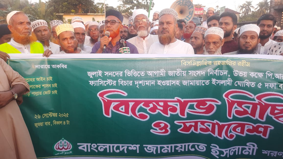 জামায়াতের দাবীগুলো হলো- (১)জুলাই জাতীয় সনদের ভিত্তিতে আগামী ফেব্রুয়ারিতে নির্বাচন আয়োজন করা; (২)আগামী জাতীয় নির্বাচনে সংসদের উভয় কক্ষে পিআর পদ্ধতি চালু করা;(৩) অবাধ, সুষ্ঠু ও গ্রহণযোগ্য নির্বাচনের লক্ষ্যে সবার জন্য লেভেল প্লেয়িং ফিল্ড (সবার জন্য সমান সুযোগ) নিশ্চিত করা;(৪) ফ্যাসিস্ট সরকারের সব জুলুম-নির্যাতন, গণহত্যা ও দুর্নীতির বিচার দৃশ্যমান করা (৫)স্বৈরাচারের দোসর জাতীয় পার্টি ও ১৪ দলের কার্যক্রম নিষিদ্ধ করা।