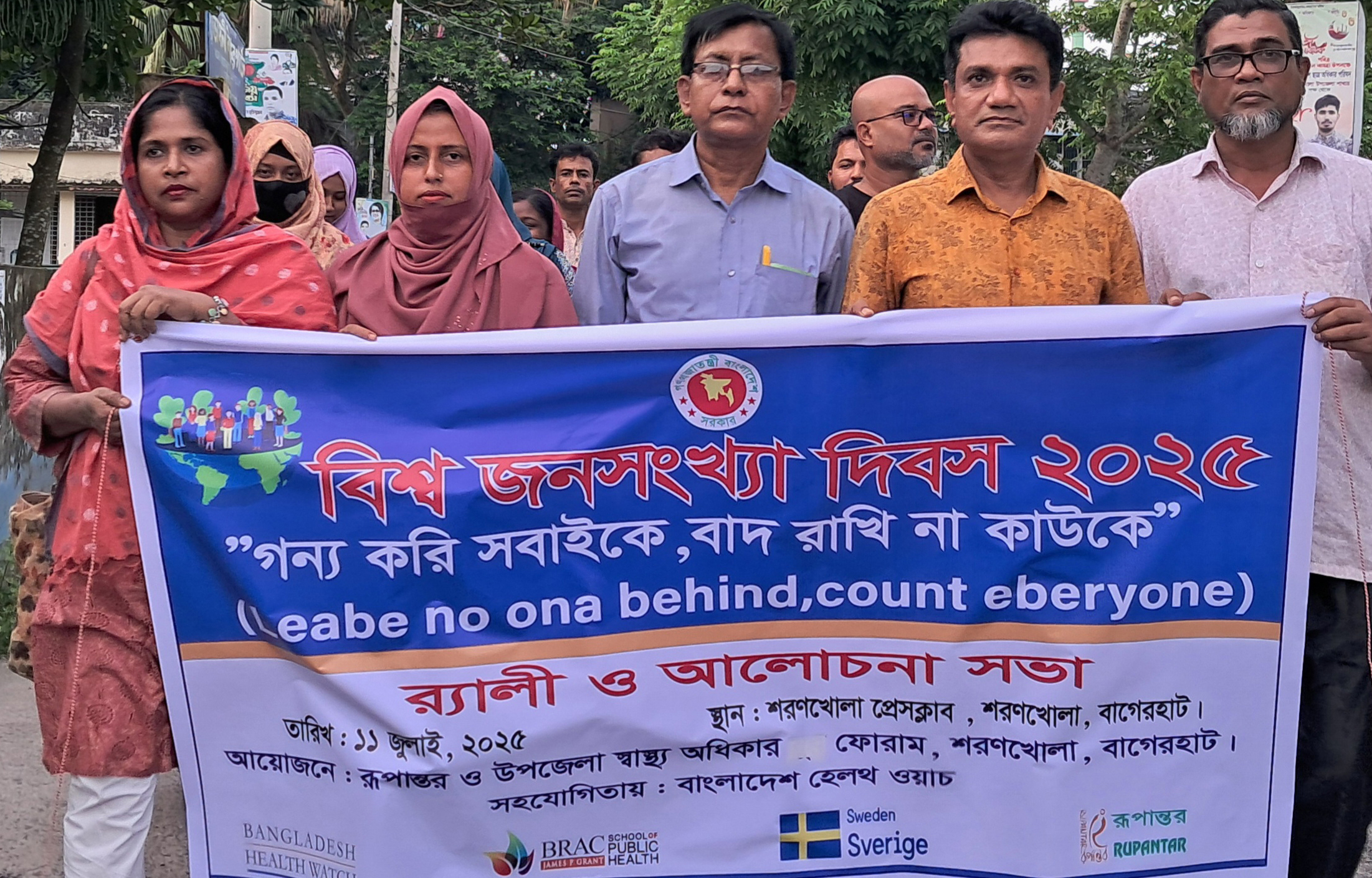 শরণখোলায় বিশ্ব জনসংখ্যা দিবস-২০২৫ পালিত হয়েছে। এ উপলক্ষ্যে র্যালী ও আলোচনা সভা অনুষ্ঠিত হয়েছে।
