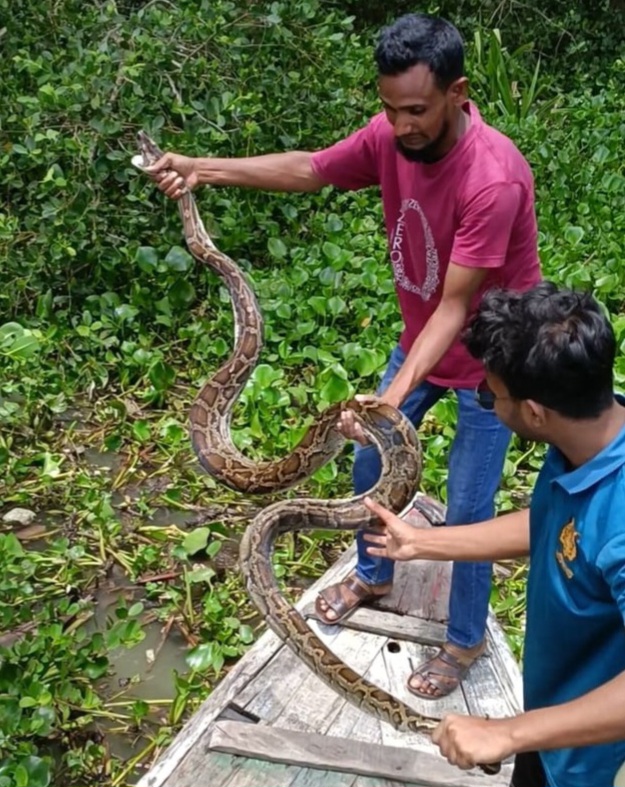 শরণখোলার লোকালয়ে উদ্ধার অজগর সুন্দরবনে অবমুক্ত