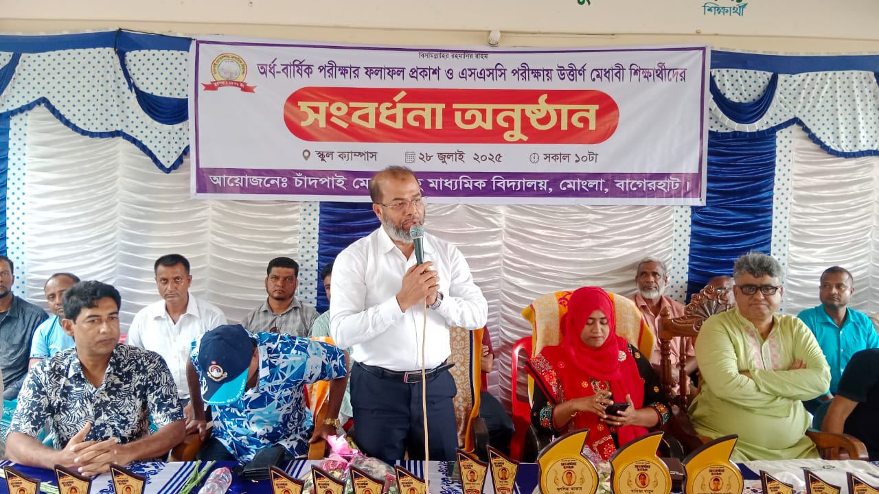 সংবর্ধনা অনুষ্ঠানে সভাপতিত্ব করেন বিদ্যালয় ব্যবস্থাপনা কমিটির সভাপতি মোঃ নূর আলম শেখ। বক্তব্য রাখেন উপজেলা নির্বাহী অফিসার শারমিন আক্তার সুমী, সেভ দ্যা সুন্দরবন ফাউন্ডেশনের চেয়ারম্যান বাগেরহাট জেলা বিএনপির যুগ্ম আহ্বায়ক লায়ন ড. শেখ ফরিদুল ইসলাম, উপজেলা বিএনপির সভাপতি আব্দুল মান্নান হাওলাদার, সাধারণ সম্পাদক আবু হোসাইন পনি, উপজেলা জামায়াতে ইসলামীর সেক্রেটারি জেনারেল এবং অত্র বিদ্যালয়ের প্রাক্তন ছাত্র রশিদুজ্জামান শিশির, শেখ রুস্তুম আলী, শেখ শাকির হোসেন, এসএসসি উত্তীর্ণ মেধাবী শিক্ষার্থী হাওলাদার ইমপিয়াস হোসাইন, স্কুলের দশম শ্রেণীর শিক্ষার্থী নুসরাত জাহান কার্নিজ প্রমূখ।