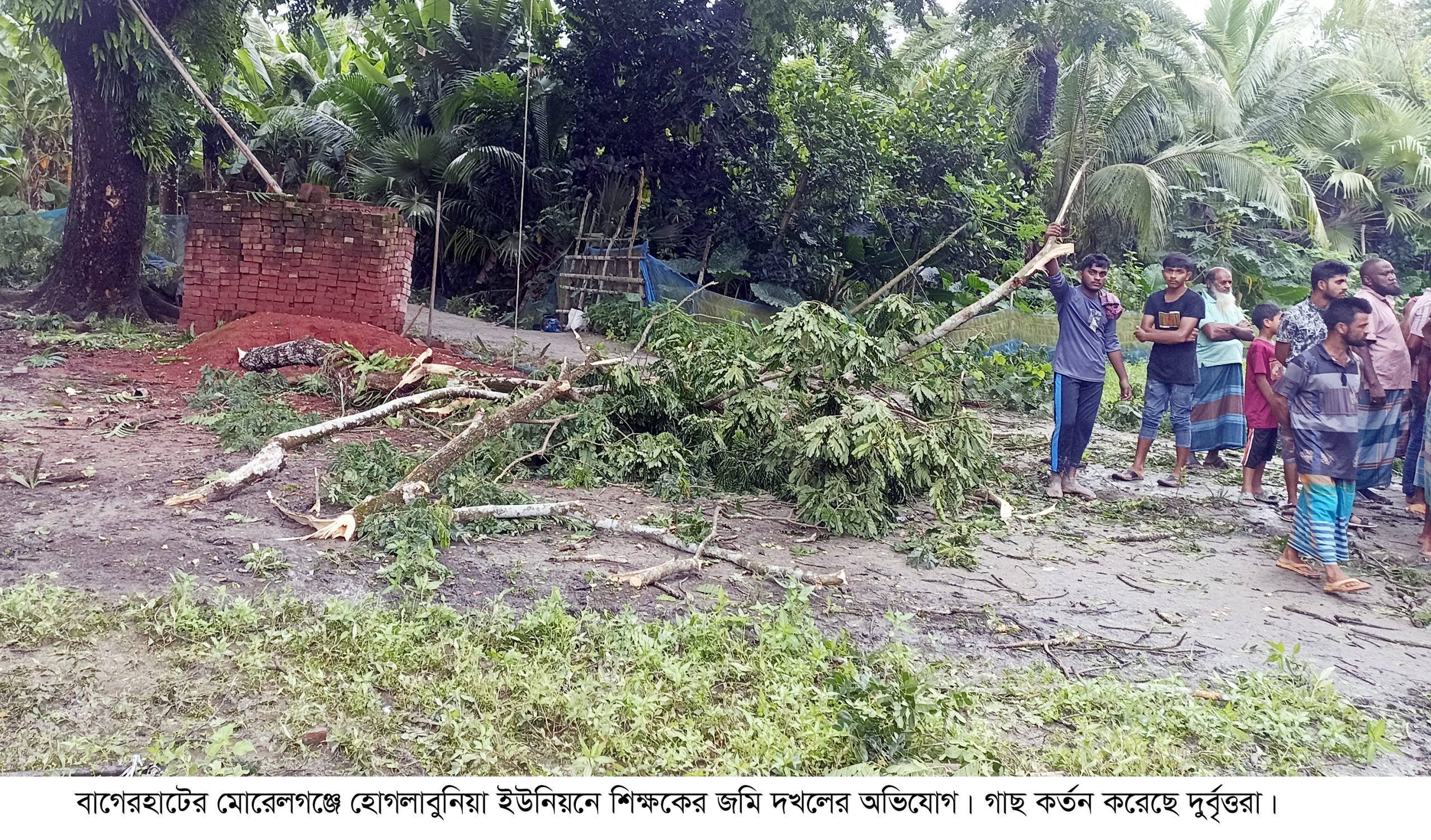 মোরেলগঞ্জে মাদ্রাসা শিক্ষকের জমি দখলের অভিযোগ, গাছ কর্তন