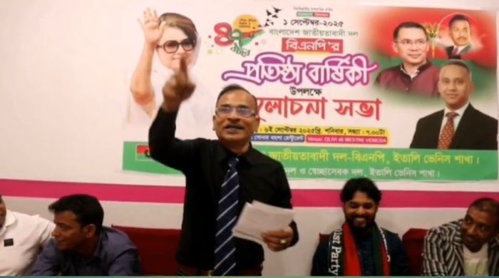 মোল্লা মনিরুজ্জামান মনির ,ইতালি প্রতিনিধিঃ   ইতালির ভেনিসে বাংলাদেশ জাতীয়তাবাদী দল বিএনপির ৪৭ তম প্রতিষ্ঠা বার্ষিকী উপলক্ষে আলোচনা সভা অনুষ্ঠিত হয়েছে। বৃহস্পতিবার স্থানীয় একটি হলরুমে ভেনিস যুবদল ও স্বেচ্ছাসেবক দলের