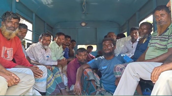 ভারতে আটক বাংলাদেশী ১৯ জেলেকে সোমবার গাড়ীতে করে আদালদত পাঠানো হচ্ছে ।       কাকদ্বীপ (কোলকাতা) থেকে মুন্না সরদার: বঙ্গোপসাগরে মাছ ধরতে গিয়ে একটি বাংলাদেশী ফিশিংট্রলারসহ  ১৯ জন জেলে