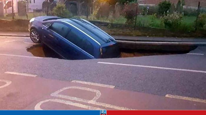 সিঙ্গাপুরের ব্যস্ত সড়কে ঘটে গেল এক ভয়াবহ দুর্ঘটনা। হঠাৎই দেবে গেল রাস্তা, চোখের পলকে তৈরি হলো বিশাল গর্ত—সেই গর্তে গিয়ে পড়ে একটি চলন্ত গাড়ি। শনিবার (২৬ জুলাই) বিকেল ৫টার দিকে