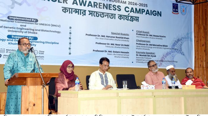 সৈকত মোঃ সোহাগ, খুলনা অফিস পার্টিসিপেশন প্রোগ্রাম ২০২৪-২০২৫-এর আওতায় আজ ২১ জুলাই (সোমবার) খুলনা বিশ্ববিদ্যালয়ে ক্যান্সার সচেতনতা কার্যক্রমের অংশ হিসেবে এক কর্মশালা অনুষ্ঠিত হয়েছে। বেলা ১১টায় বিশ্ববিদ্যালয়ের সাংবাদিক লিয়াকত আলী