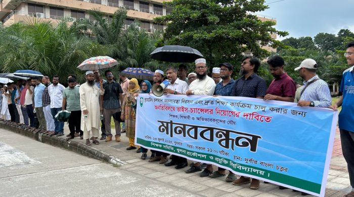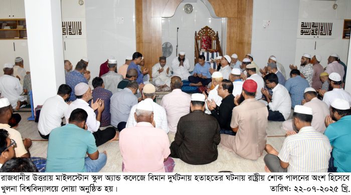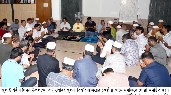 সৈকত মোঃ সোহাগ, খুলনা অফিস জুলাই শহীদ দিবস উপলক্ষ্যে আজ ১৬ জুলাই (বুধবার) খুুলনা বিশ্ববিদ্যালয়ে জাতীয় পতাকা অর্ধনমিতকরণ, দোয়া এবং বৃক্ষরোপণ কর্মসূচি পালিত হয়েছে। দিবসের শুরুতে সকালে সরকারি নির্দেশনা মোতাবেক