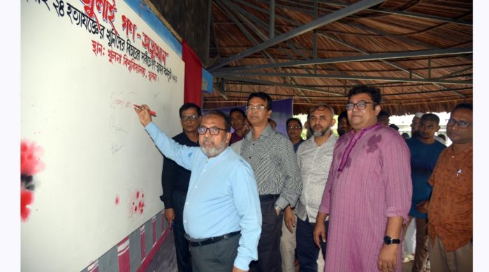 জুলাই হত্যাযজ্ঞের খুনিদের বিচারের দাবিতে খুবিতে গণস্বাক্ষর কর্মসূচির উদ্বোধন সৈকত মোঃ সোহাগ খুলনা অফিস জুলাই গণঅভ্যুত্থানের বর্ষপূর্তি উপলক্ষ্যে ‘জুলাই হত্যাযজ্ঞের’ খুনিদের বিচারের দাবিতে খুলনা বিশ্ববিদ্যালয়ে গণস্বাক্ষর কর্মসূচির উদ্বোধন করা হয়েছে।