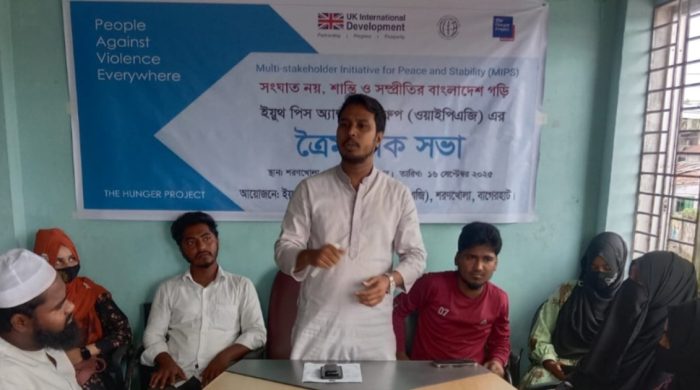 ষ্টাফ রিপোর্টার:   শরণখোলায় ইয়ুথ পিস অ্যাম্বাসেডর গ্রুপ (ওয়াইপিএজি)-এর ত্রৈমাসিক সভা অনুষ্ঠিত হয়েছে। মঙ্গলবার (১৬ সেপ্টেম্বর) সকাল ১১টায় শরণখোলা প্রেসক্লাব সভাকক্ষে দি হাঙ্গার প্রজেক্ট বাংলাদেশ ও এমআইপিএস প্রকল্পের সহযোগিতায় এ