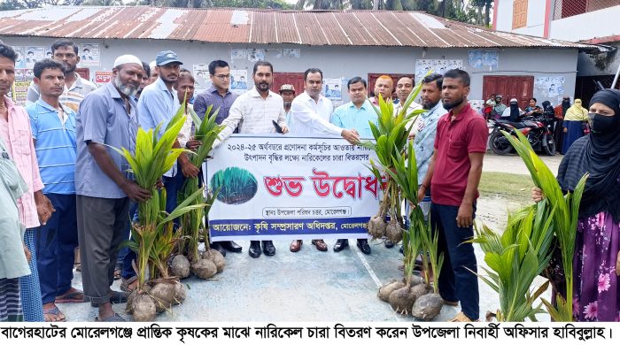 মোরেলগঞ্জে ক্ষুদ্র প্রান্তিক কৃষকদের মাঝে ১৪ শ’ নারিকেল চারা বিতরণ করা হয়েছে। রবিবার বেলা ১১টায় উপজেলা কৃষি সম্প্রসারণ অধিদপ্তরের উদ্যোগে ২০২৪-২০২৫ অর্থ বছরে প্রণোদনা কর্মসূচির আওতায় ১৬ টি ইউনিয়ন