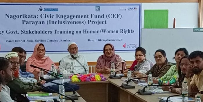 সৈকত মোঃ সোহাগ, খুলনা অফিস: খুলনায় মানবাধিকার ও নারী অধিকার বিষয়ে সরকারি কর্মকর্তাদের সক্ষমতা বৃদ্ধি বিষয়ক প্রশিক্ষণ অনুষ্ঠিত হয়েছে। দু’দিন ব্যাপি প্রশিক্ষণটির উদ্বোধনী অনুষ্ঠান বুধবার (১৭ সেপ্টেম্বর) সকালে খুলনা