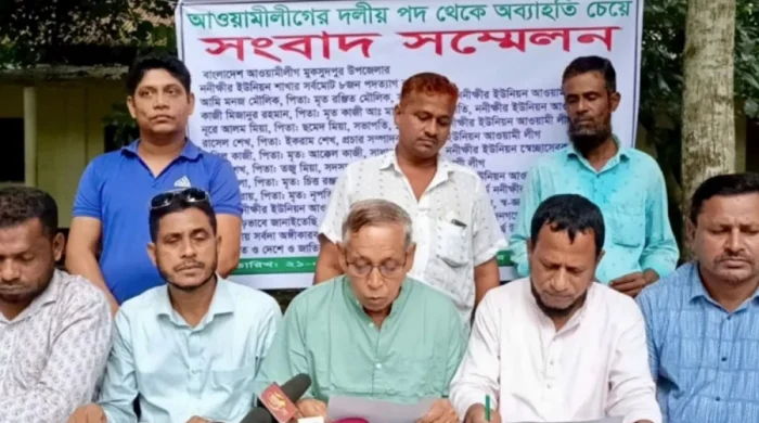 গোপালগঞ্জের মুকসুদপুরে সংবাদ সম্মেলন করে আওয়ামী লীগের আট নেতা একযোগে পদত্যাগের ঘোষণা দিয়েছেন। তারা বলেছেন, আওয়ামী লীগের সঙ্গে আর কোনো সম্পর্ক নেই এবং ভবিষ্যতেও থাকবে না। বৃহস্পতিবার (২১ আগস্ট) বিকেলে