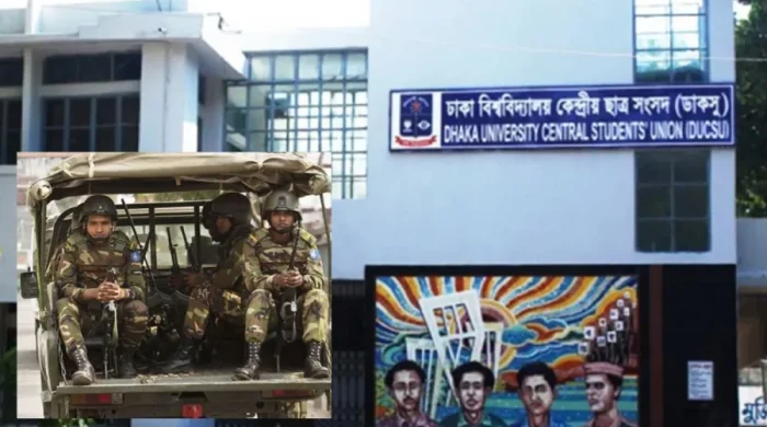 ঢাকা বিশ্ববিদ্যালয় কেন্দ্রীয় ছাত্র সংসদ (ডাকসু) নির্বাচনের দিনে সেনাবাহিনী স্ট্রাইকিং ফোর্স হিসেবে দায়িত্ব পালন করবে। মঙ্গলবার (২৬ আগস্ট) রিটার্নিং কর্মকর্তাদের সভায় এ সিদ্ধান্ত নেওয়া হয়। গণনার সময় ভোটকেন্দ্রেও থাকবেন সেনাসদস্যরা।