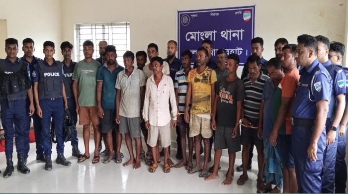 মাহমুদ হাসান,মোংলা প্রতিনিধি বঙ্গোপসাগরে বাংলাদেশ নৌবাহিনীর হাতে ফিশিংট্রলারসহ আটক  ১৪ ভারতীয় জেলেকে বাগেরহাট আদালতে প্রেরণ করেছে মোংলা থানা  পুলিশ। আটক ভারতীয় এ সকল জেলেদেরকে সোমবার দুপুরে বাগেরহাট আমলী আদালত-৬