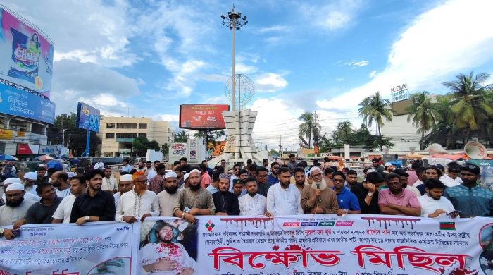 সৈকত মোঃ সোহাগ খুলনা অফিস: খুলনায় জাতীয় পার্টি কার্যালয়ে হামলা চালিয়েছে গণ অধিকার পরিষদ খুরনার নেতা-কর্মীরা। তবে পুলিশী তৎপরতায় তারা কার্যালয়ের ভেতরে প্রবেশ করতে পারেনি। বিক্ষোভকারীরা প্রধান ফটকের সাইন বোর্ড
