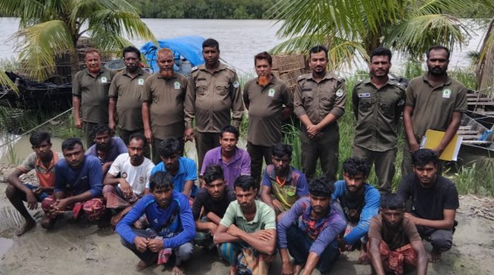 পূর্ব সুন্দরবনের চরাপুটিয়া টহল ফাড়ি  এলাকায় নিষিদ্ধ কাকড়া ধরার চারুসহ ১৪ জনকে আটক করেছে বনরক্ষীরা।এ সময় আটটি ডিঙ্গি নৌকা জব্দ করা হয়েছে। আটককৃতদের আদালতের মাধ্যমে জেলহাজতে পাঠানো হয়েছে। বন